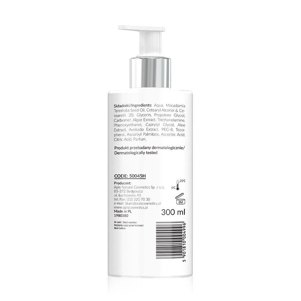 - ekstrakt z alg morskich - łagodzi podrażnienia, wzmacnia barierę ochronną skóry, intensywnie nawilża