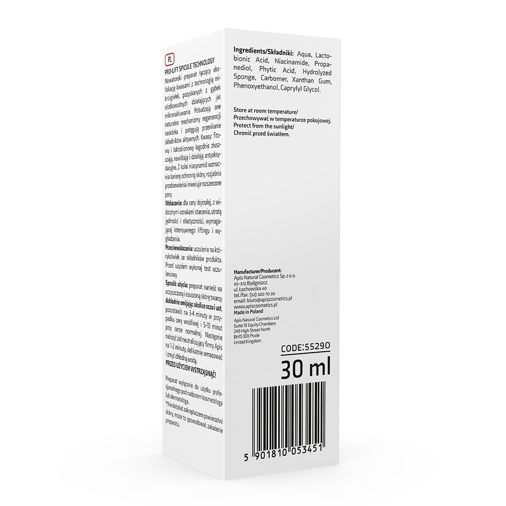 Sposób użycia: preparat nanieść na oczyszczoną i osuszoną skórę twarzy dokładnie omijając okolice oczu i ust, pozostawić na 3-4 minuty w przypadku cery wrażliwej i 5-10 minut przy cerze normalnej. Następnie nałożyć żel neutralizujący firmy Apis na 1-2 minuty, delikatnie wmasować i zmyć chłodną wodą.