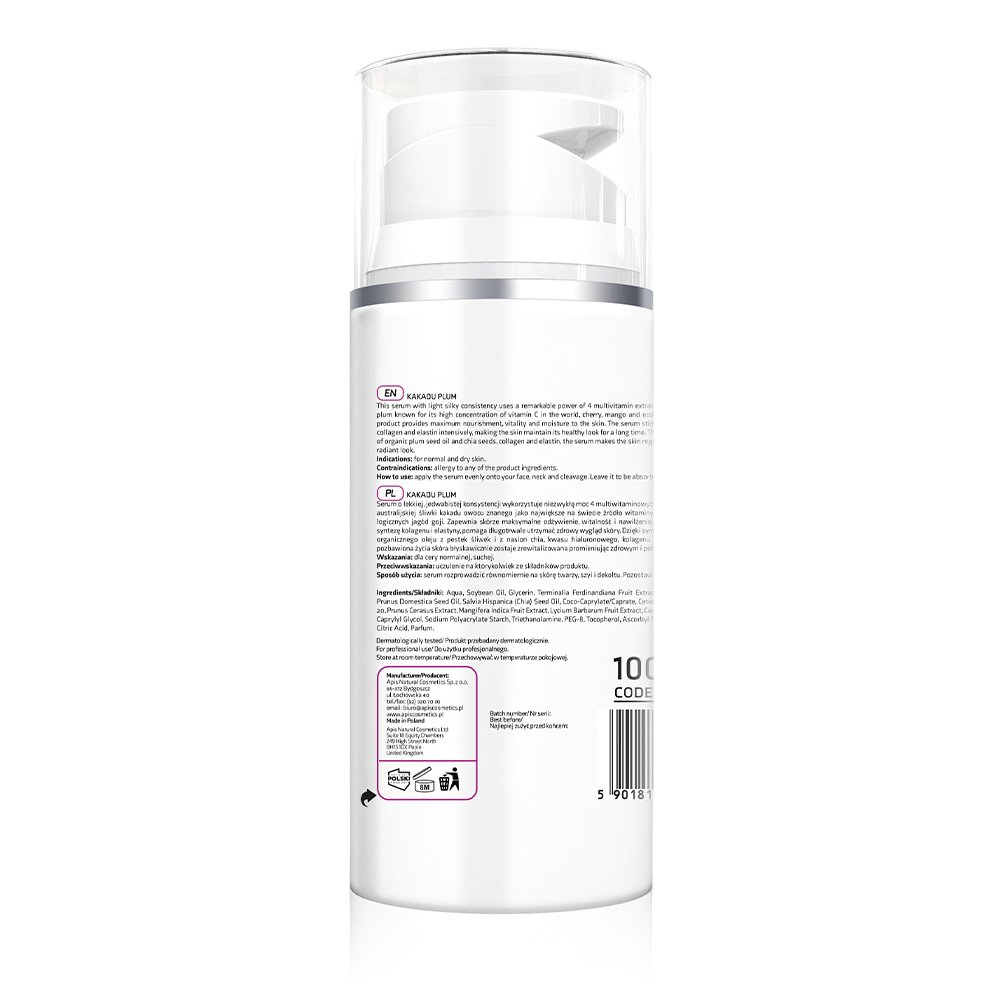Serum o lekkiej, jedwabistej konsystencji wykorzystuje niezwykłą moc 4 multiwitaminowych ekstraktów z owoców: australijskiej śliwki kakadu - owocu znanego jako największe na świecie źródło witaminy C, wiśni, mango i ekologicznych jagód goji. Zapewnia skórze maksymalne odżywienie, witalność i nawilżenie. Intensywnie stymuluje syntezę kolagenu i elastyny, pomaga długotrwale utrzymać zdrowy wygląd skóry. Dzięki synergistycznemu działaniu organicznego oleju z pestek śliwek i z nasion chia oraz kwasu hialuronowego sprawia, że pozbawiona życia skóra błyskawicznie zostaje zrewitalizowana promieniując zdrowym i pełnym energii blaskiem.